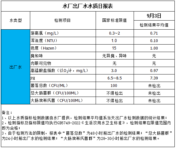 水廠出廠水水質(zhì)日?qǐng)?bào)表(2025-9-3)