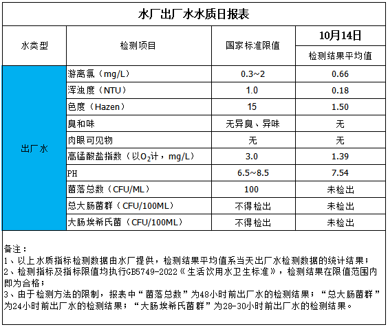 水廠出廠水水質(zhì)日報表(2025-10-14)